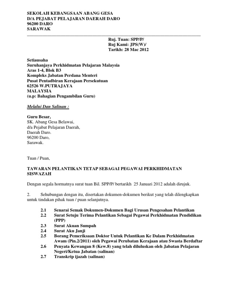 Hal ini akan dimaklumkan oleh majikan menerusi surat pengesahan jawatan dan adakalanya diiringi dengan kenaikan gaji. Surat pengesahan majikan kakitangan kerajaan. Contoh surat lantikan ajk pibg.
